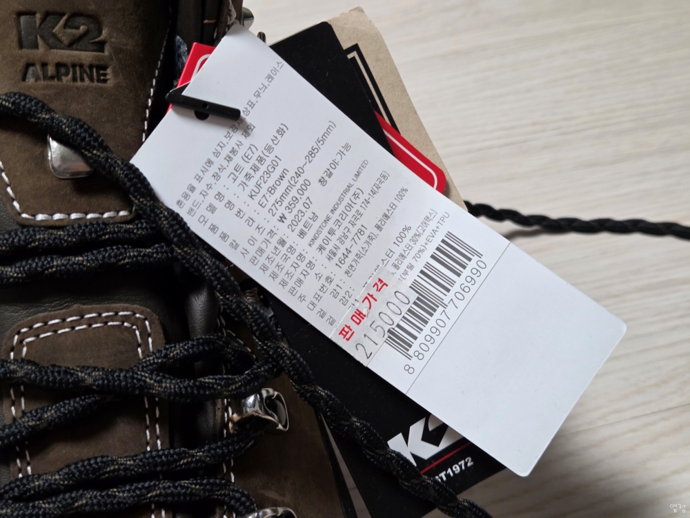 K2 등산화 이월상품 고트 KUF23G01 판매가격은 359,000원으로 꽤나 비싼 제품